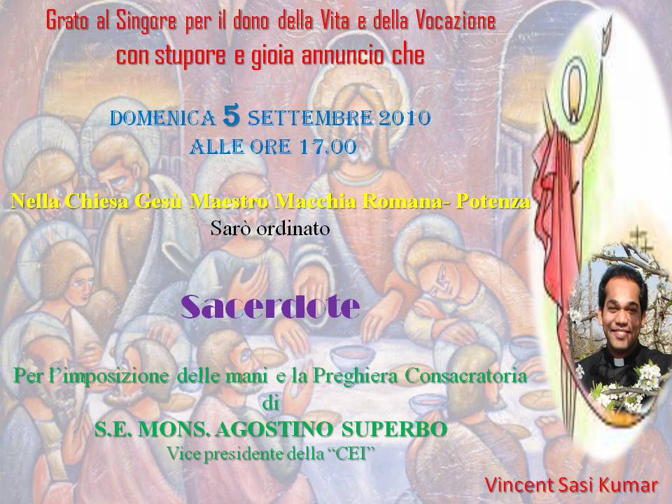 SASI VINCENT KUMAR PRIMA CELEBRAZIONE EUCARISTICA A POLICORO 2011